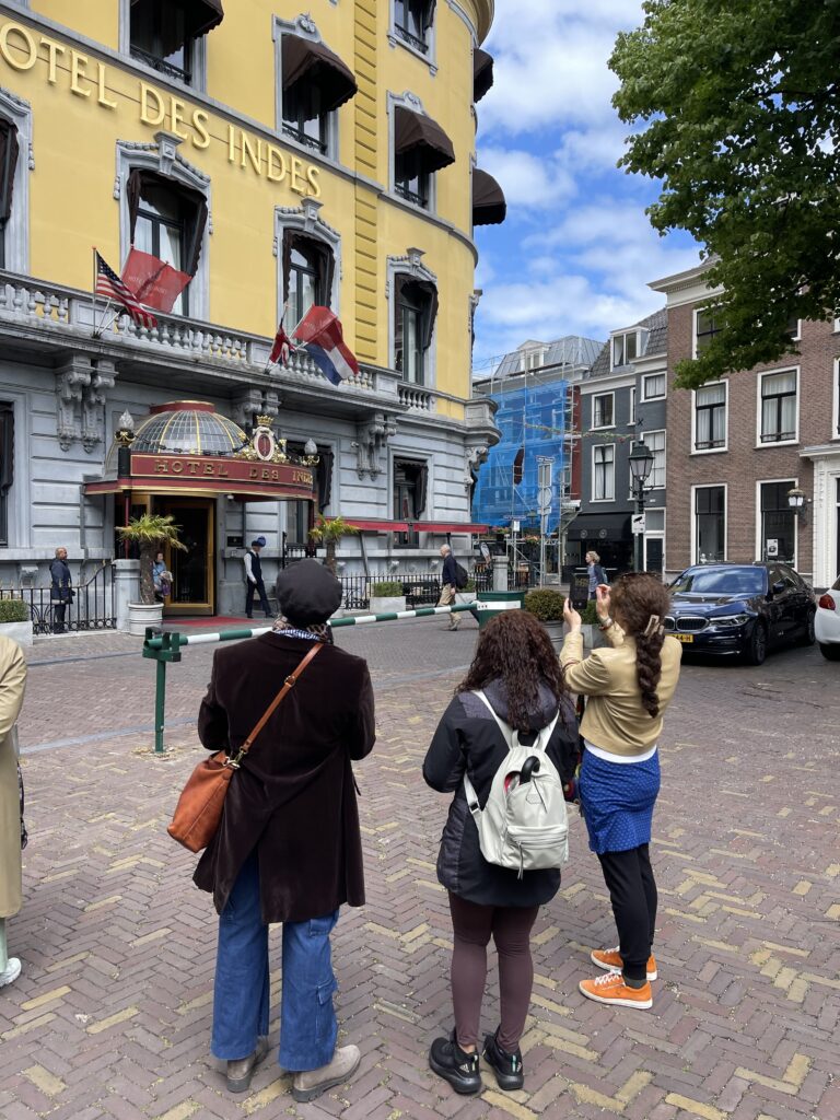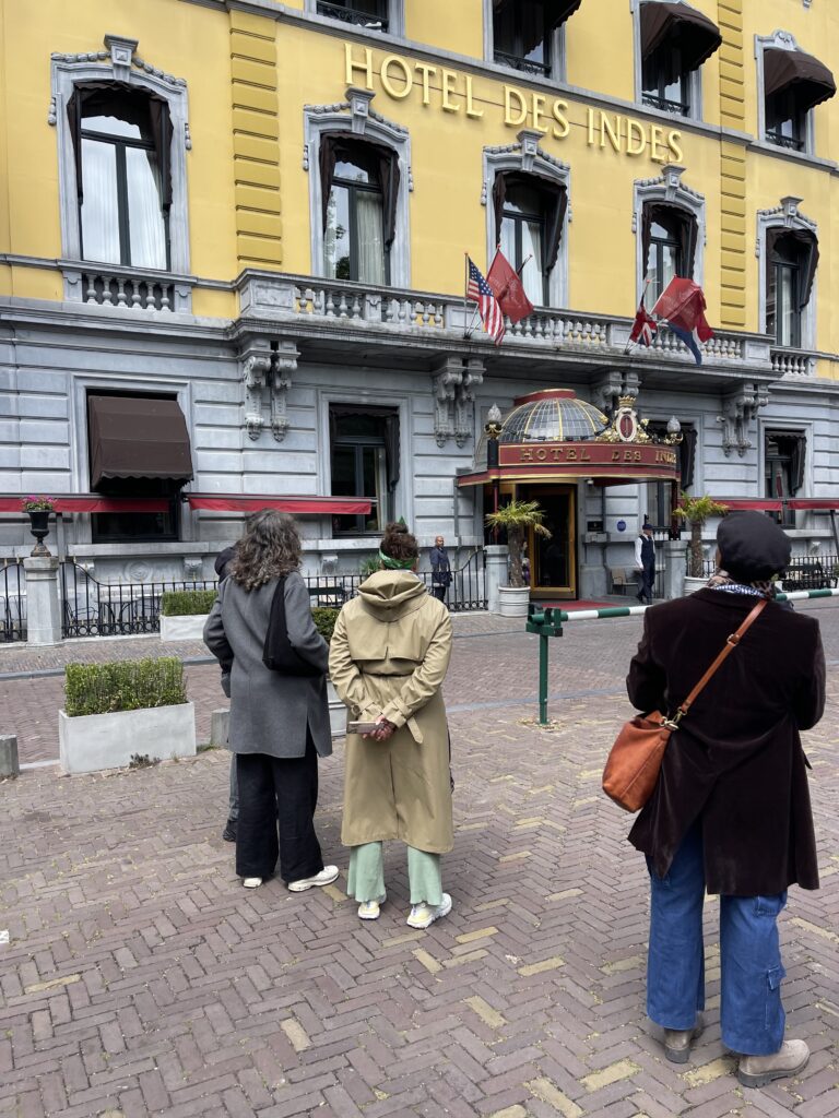 Daarna liepen we richting het Lange Voorhout, waar de grandeur van Den Haag zich in volle glorie toont. Maar wat zit daarachter? Wat weten we werkelijk van de geschiedenis van Hotel Des Indes, bijvoorbeeld?